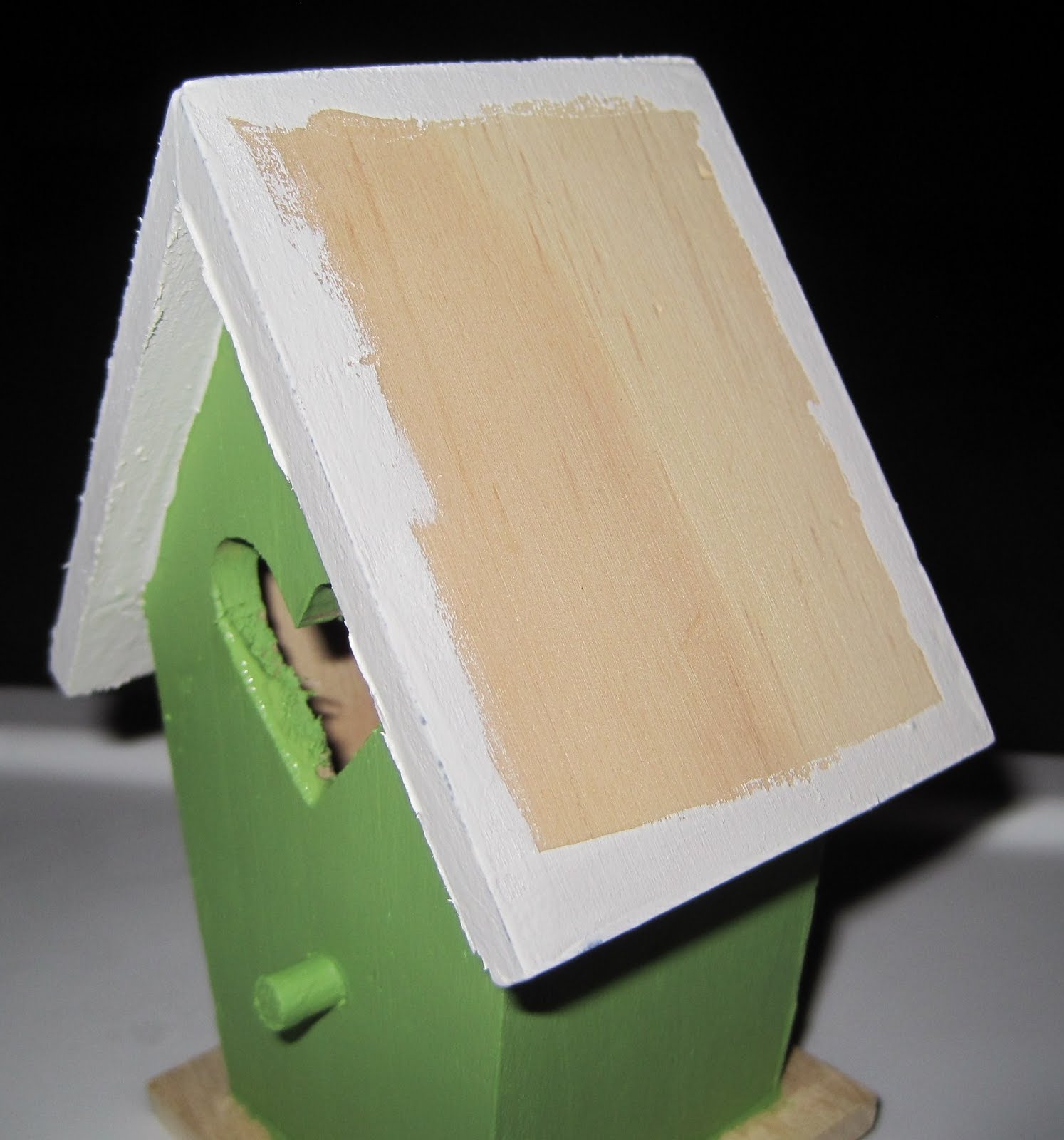 First, I painted the house part green. I included the paint bottle in the picture so you can see what I used. I think it was leftover from wedding day crafts.