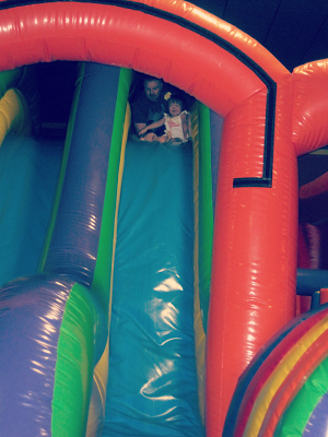 You can pay a one time fee and then go through a blow up obstacle course/giant slide as many times as you want. Michael ended up taking Olivia through 3 times in a row before other kids wanted a turn.