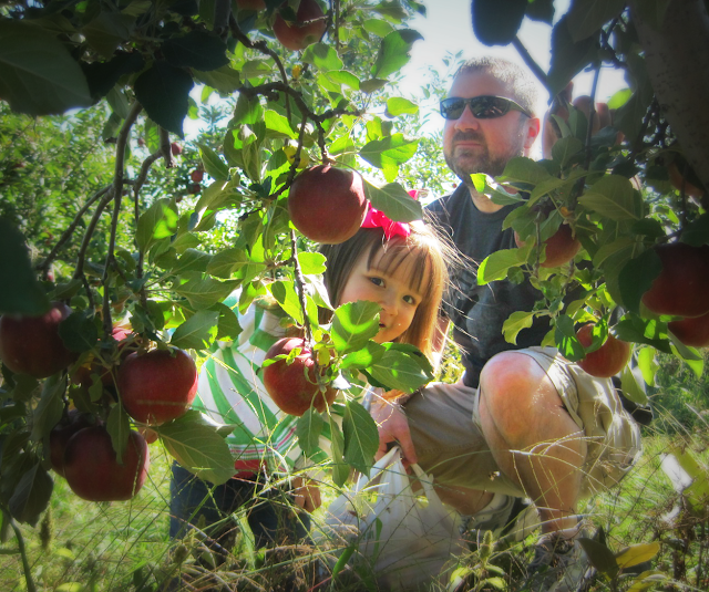 Even though there were plenty of apples to pick at her level, Michael thought it might be fun for her to pick a few from up high.