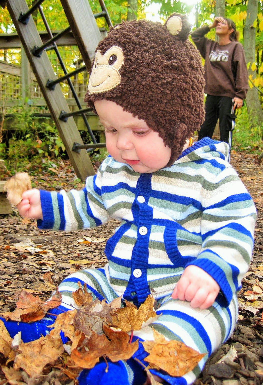Olivia and Boppa kept playing with the tree house and Logan got to play with the leaves.